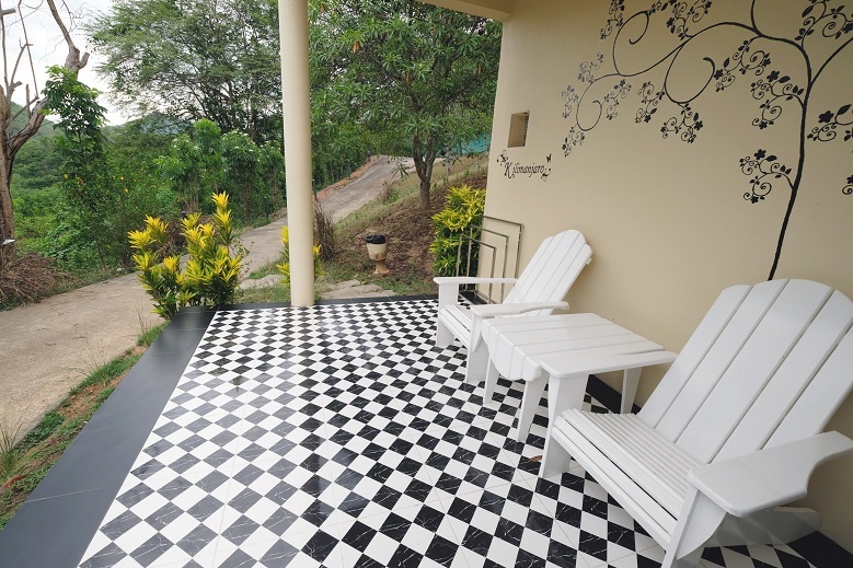 บ้านคิลิมานจาโร (Kilimanjaro) เป็นวิลล่า แบบดีลักซ์ มี 1 ห้อนนอน + นั่งเล่น มีดาดฟ้า สำหรับพัก 2 ท่าน เสริมเพิ่มได้อีก 2 ท่าน
